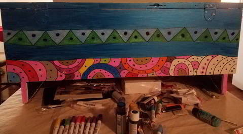 So, when I lived in New Orleans, which I did for 30 years, there was a group of young artists (called the Ya-Ya artists) who painted chairs, old chairs, all these bright, whimsical colors and designs. You are totally channeling the Ya-Ya artists. Your hope chest is beautiful. I think you should absolutely do some chairs next.