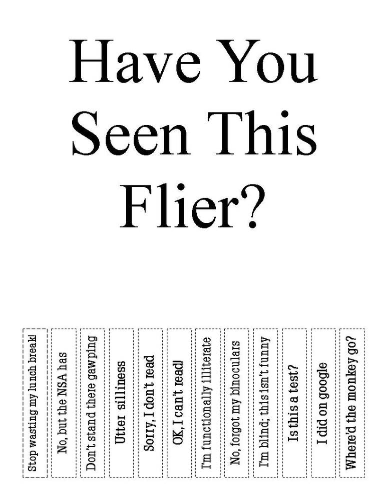At my IRL job we’re about to move offices. I’ve decided there is definitely going to be a community bulletin board in the new place, and *someone* is definitely going to post silly, time-wasting signs on it. Let this be on your head.