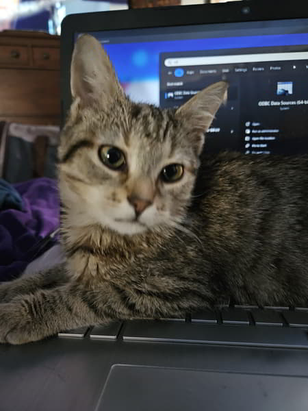 Bea (also known as Beeboop, Beebop, Bee girl, and stink butt because damn) is the sweetest little kitty. She is affectionate and loves to be held, which is not something Alfie or Gertie likes. Alfie would tolerate it. Gertie fucking hates to be picked up. After 7 years, she has just gotten to the point where she will sit on my son Joey’s lap.